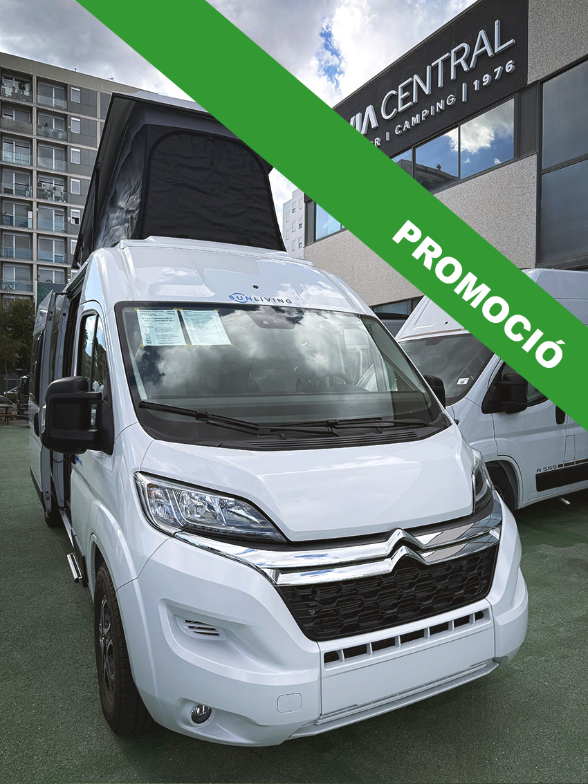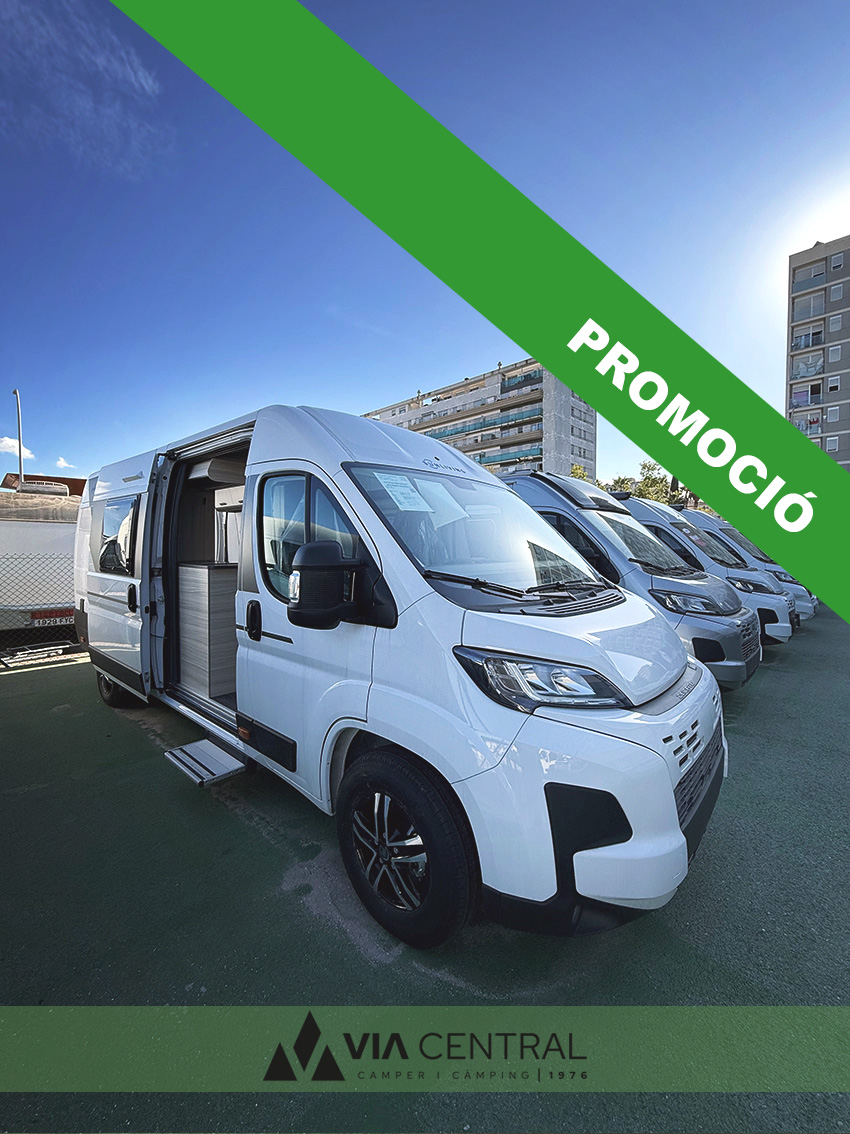 Equipament vehicle: Fiat 6D 2,2 140 HP 35L s.8 Xassís 3500kg Llantes alumini 16″‘ Roda de recanvi DRL – Llums dia halògens Dipòsit carburant 90l. Dipòsit Ad-Blue (L) 20l. Transmisió manual 6 velocitats Aire accondicionat a cabina Equipament Camper: Batería 100Ah,AGM ; k=10 Calefacció Webasto Air Top 2000 Diesel Aigua calenta Webasto thermo top Diesel Comandament digital de calefacció Frigorífic Dometic 150l. Dipòsit aigües netes 100l. Dipòsit aigües grises 90l. Llit elèctric Enfosquidor cabina de cortina Mosquitera de porta